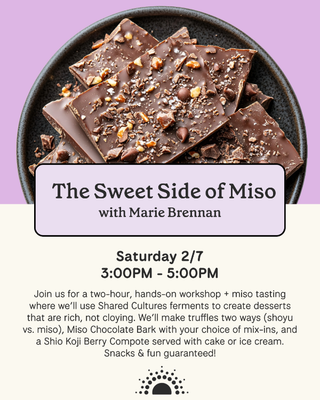 Learn to grow koji, make miso, or create any funky ferment using the magic of koji! We will set up a virtual consultation with you to discuss your interests so we can customize your learning experience. Workshops are conducted virtually on Google Meet.