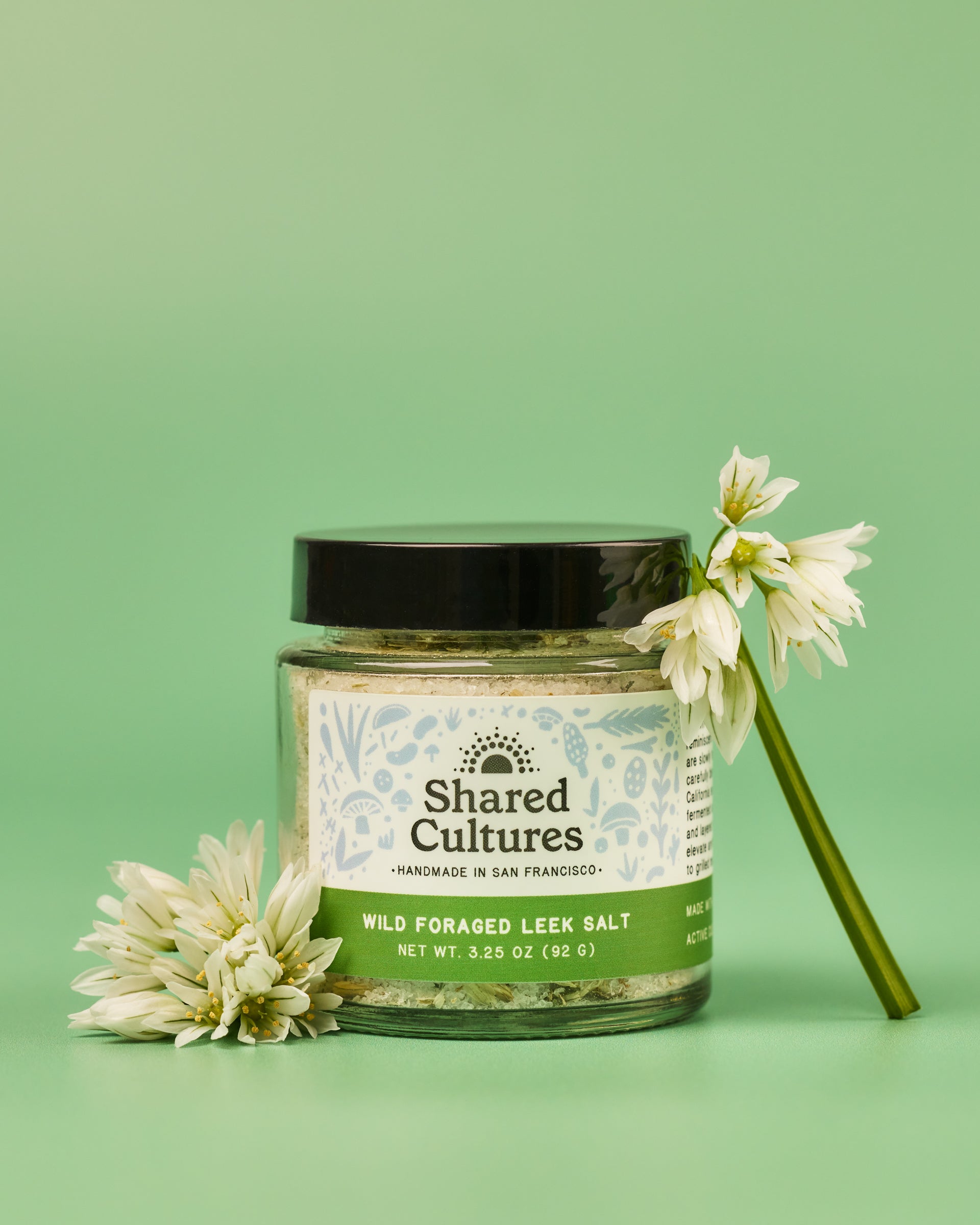Wild foraged three-cornered leeks, known for their delicate flavor reminiscent of onions, garlic, and chives, are slowly fermented with koji, then carefully blended with leek flowers and California sea salt. The result is a savory fermented salt, bursting with amino acids and layered with natural umami. Use it to elevate anything from roasted vegetables to grilled meats, soups, and popcorn!