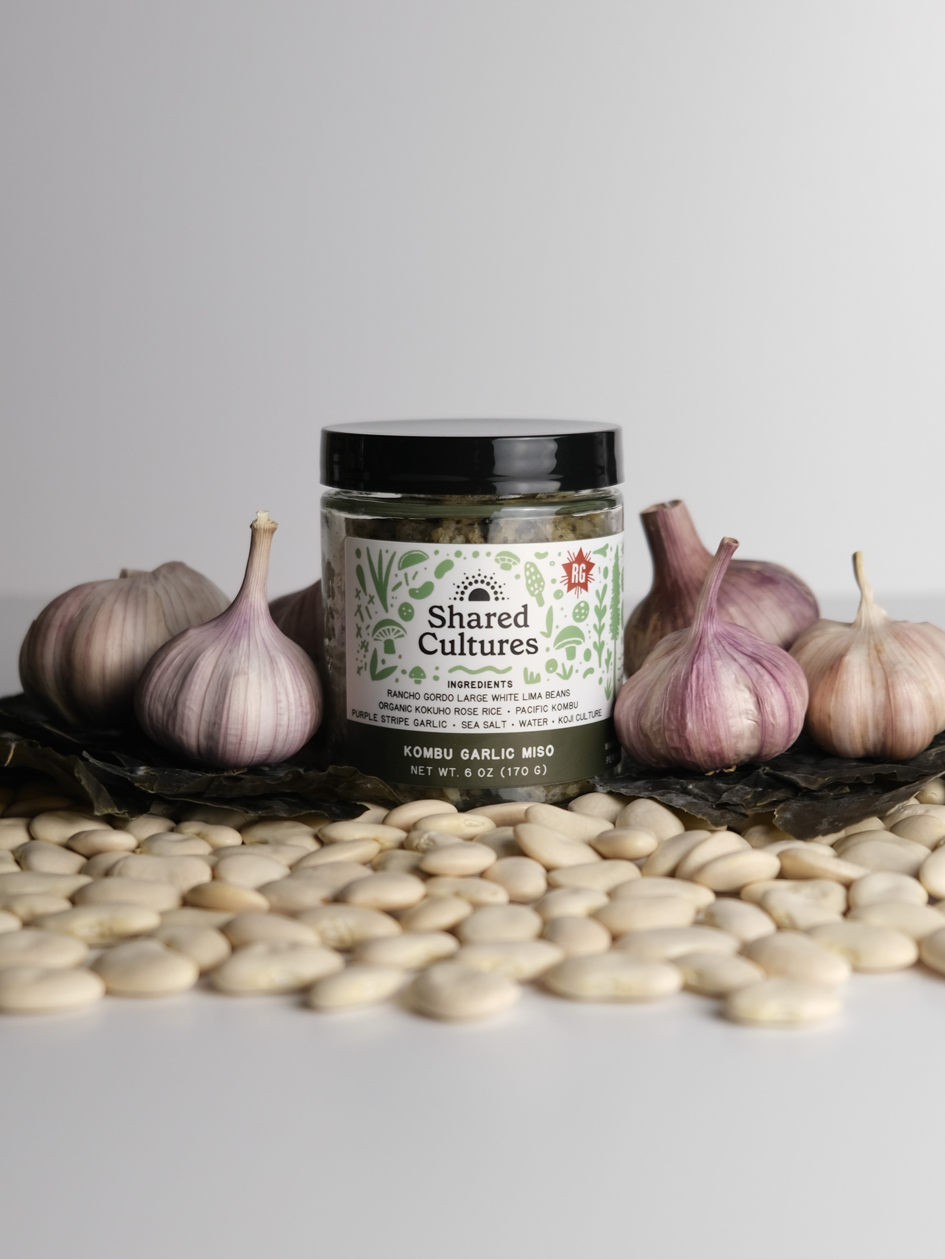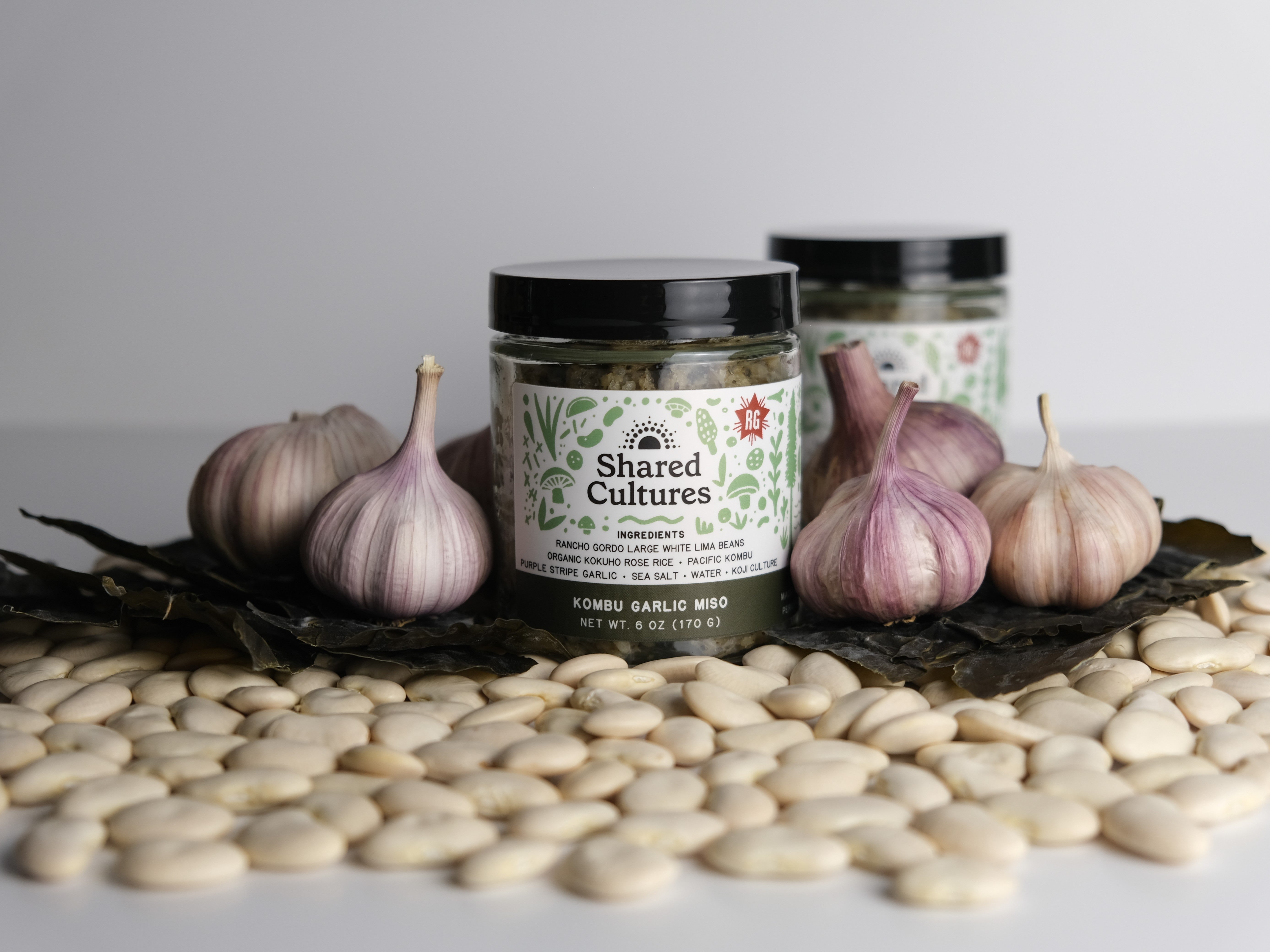 Pacific Ocean kombu seaweed and purple stripe garlic from Burlap & Barrel are fermented with San Francisco grown koji, organic heirloom rice from Koda Farms, and Rancho Gordo large white lima beans to create a miso reminiscent of the California coast.
