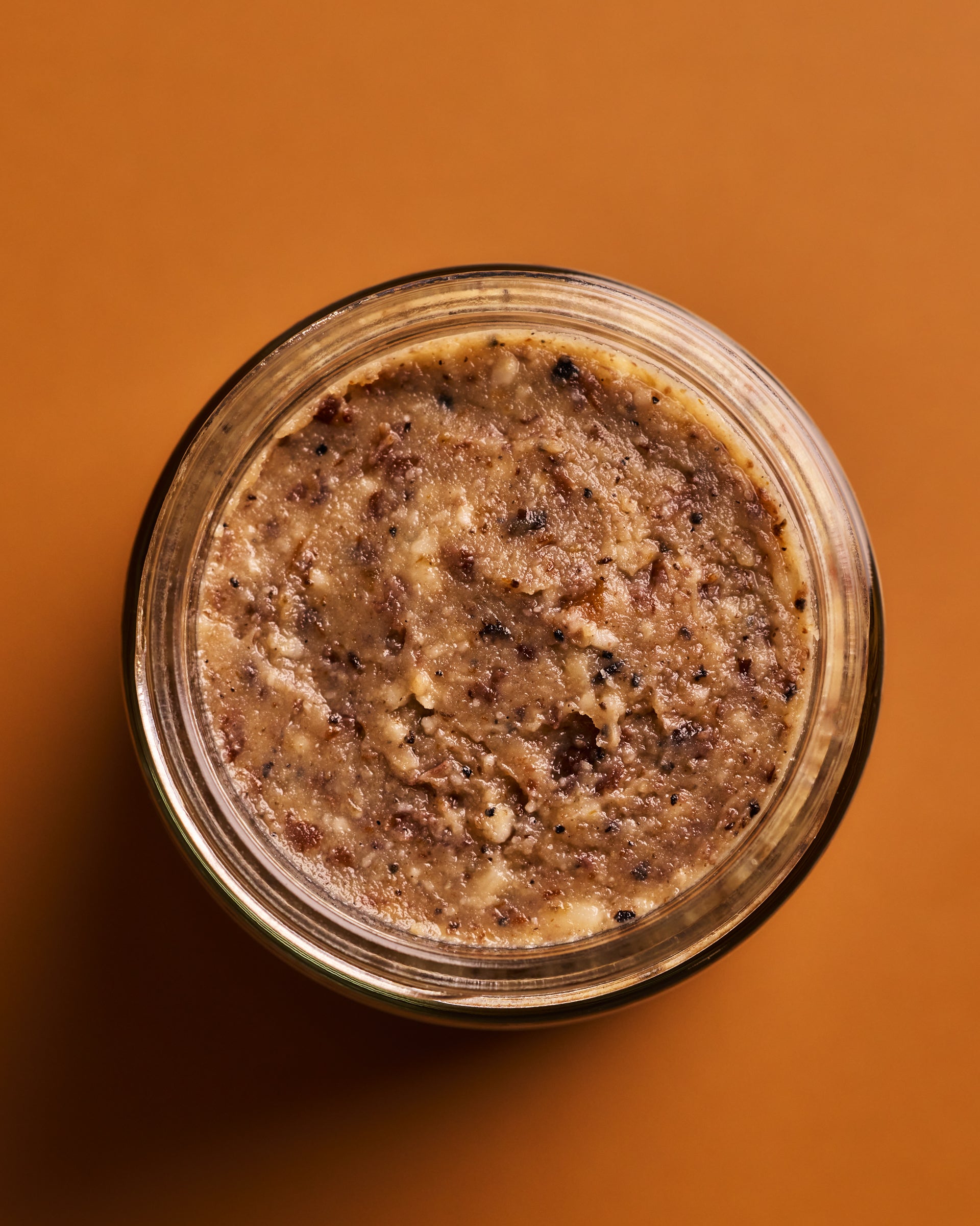 This miso is handcrafted with wild-foraged mushrooms (black trumpets, hedgehogs, and yellowfoot chanterelles)from the Northern California coast, San Francisco-grown koji, organic heirloom rice from Koda Farms, and Rancho Gordo Christmas Lima Beans.