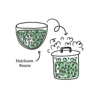 Beans are carefully washed, cooked, and cooled.