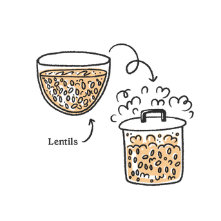 Lentils are carefully washed and steamed.