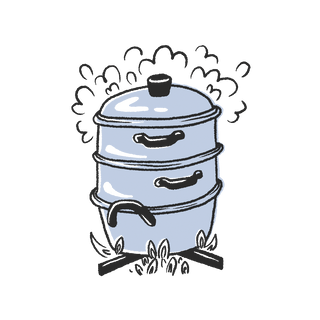 The soaked rice is gently steamed over the stove in large pots, filling the room with a warm, nutty aroma as each grain turns perfectly tender.