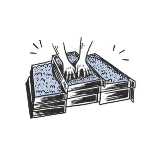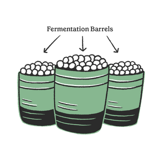 Everything gets carefully mixed and packed into our fermentation barrels and weighed down with rocks.